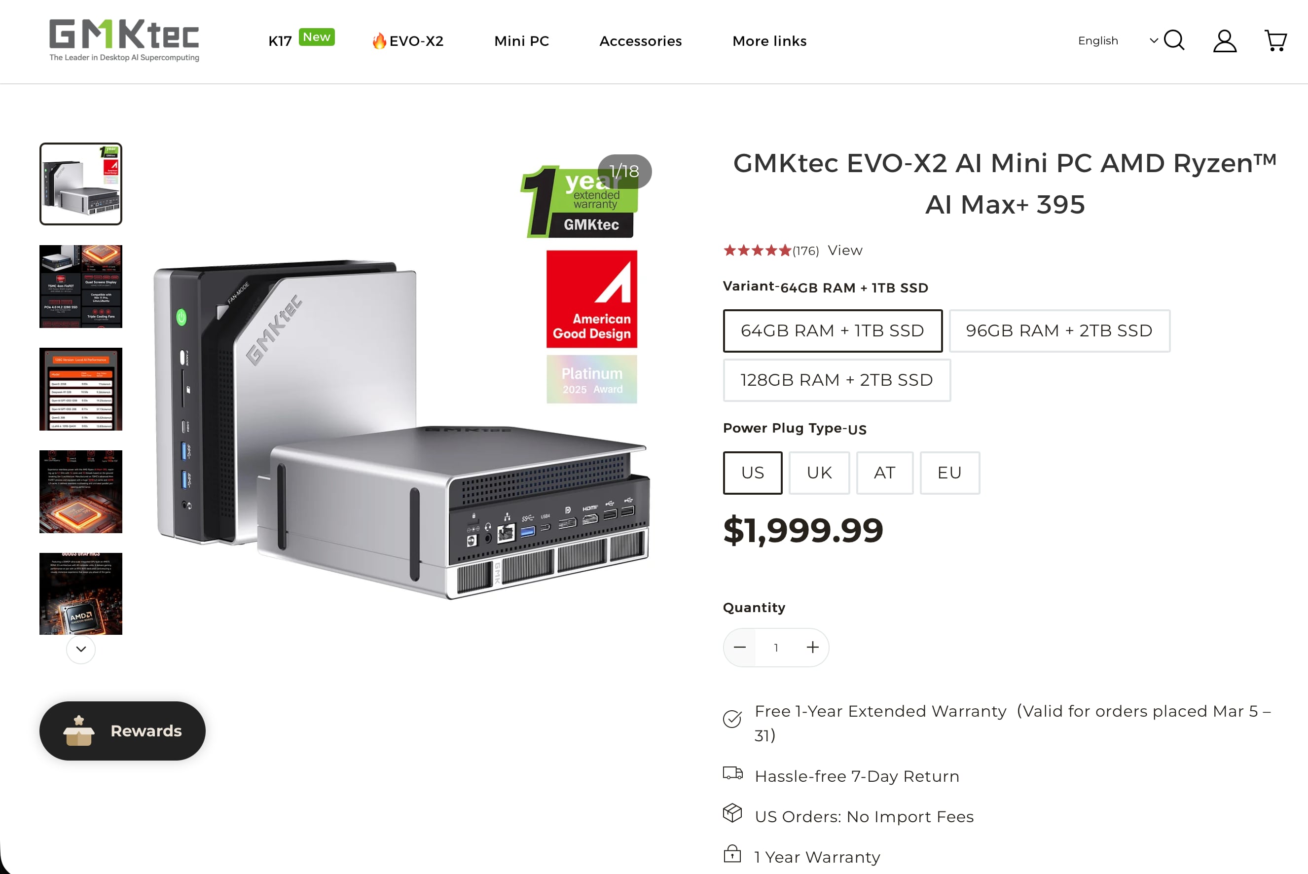 | GMKtec EVO-X2 | Ryzen AI Max+ 395 | 64 GB (up to 256 GB/s) | $1,999.99 |