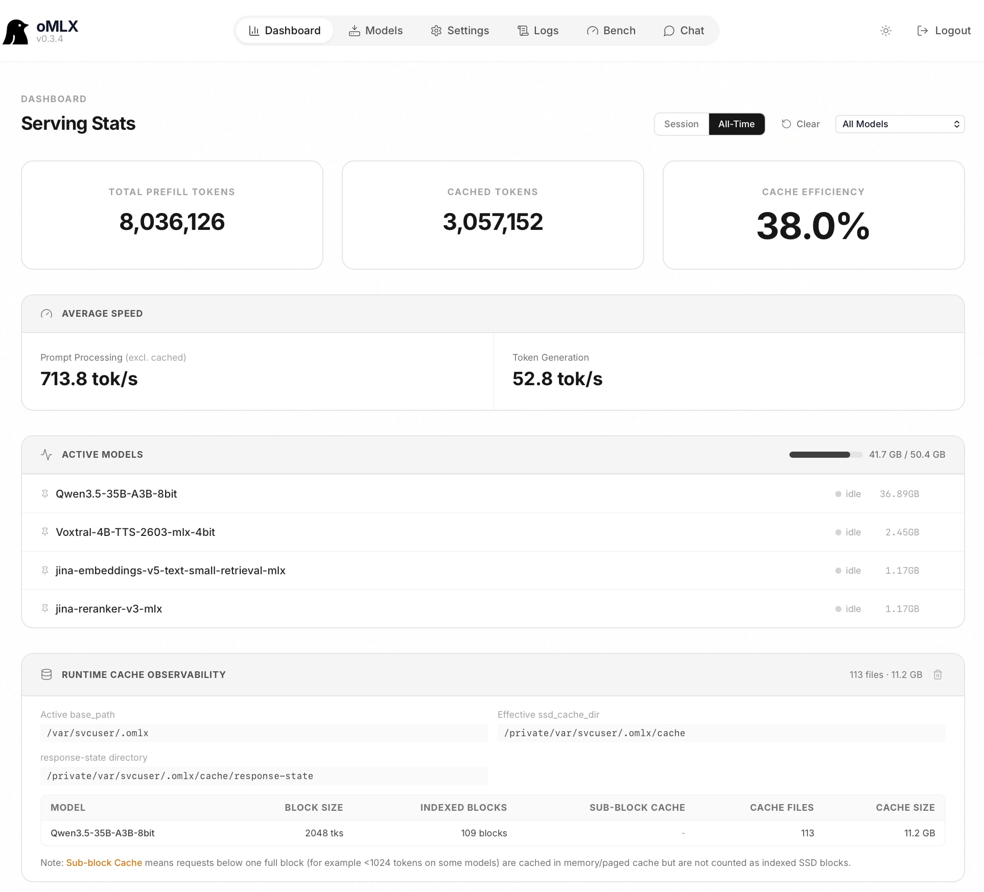 Visit http://127.0.0.1:28100/admin/dashboard , use the generated secret as your password and open the oMLX admin dashboard.